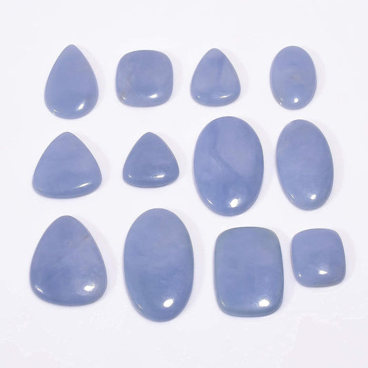 Stone Name : Natural Angelite Cabochon Stone Color : As Seen As Picture Weight : 100 carats Size : Approx 20 to 35 mm Quantity : 2 to 4pcs Shape : Mix Shape Country Of Origin : Peru Back Side : Flat Quality : A+ Gemstone Type : Natural