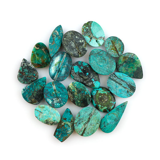 Stone Name : Natural Tibetan Turquoise Gemstone Cabochon Stone Color : As Seen As Picture Weight : 100 carats Size : Approx 18 to 35 mm Quantity : 4 to 7pcs Shape : Mix Shape Country Of Origin : Tibet Back Side : Flat Quality : AA+ Gemstone Type : Natural