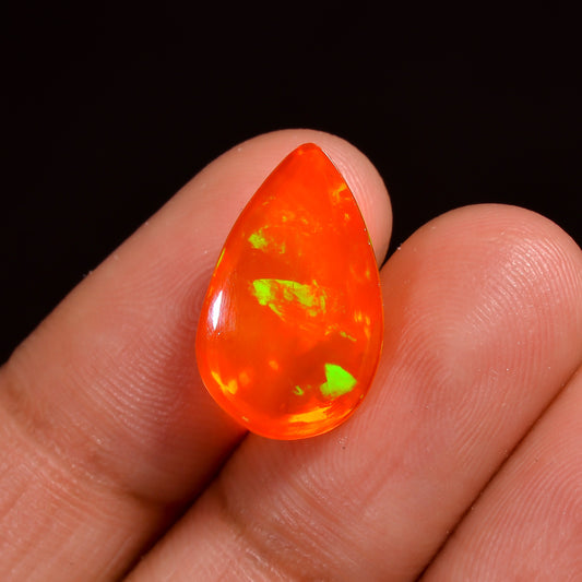 weight(ct) 05.00 Cts. Stone Name Orange Ethiopian Opal Stone Color Orange Shape Pear stone size 17X10X6 MM transparency Fire Play