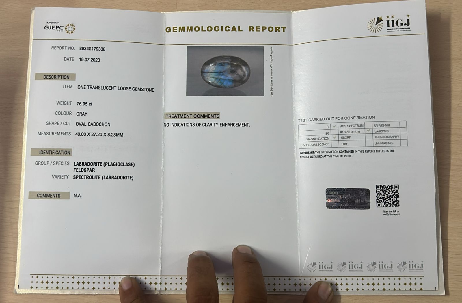 IGI CERTIFIED GEM AUTHENTICITY