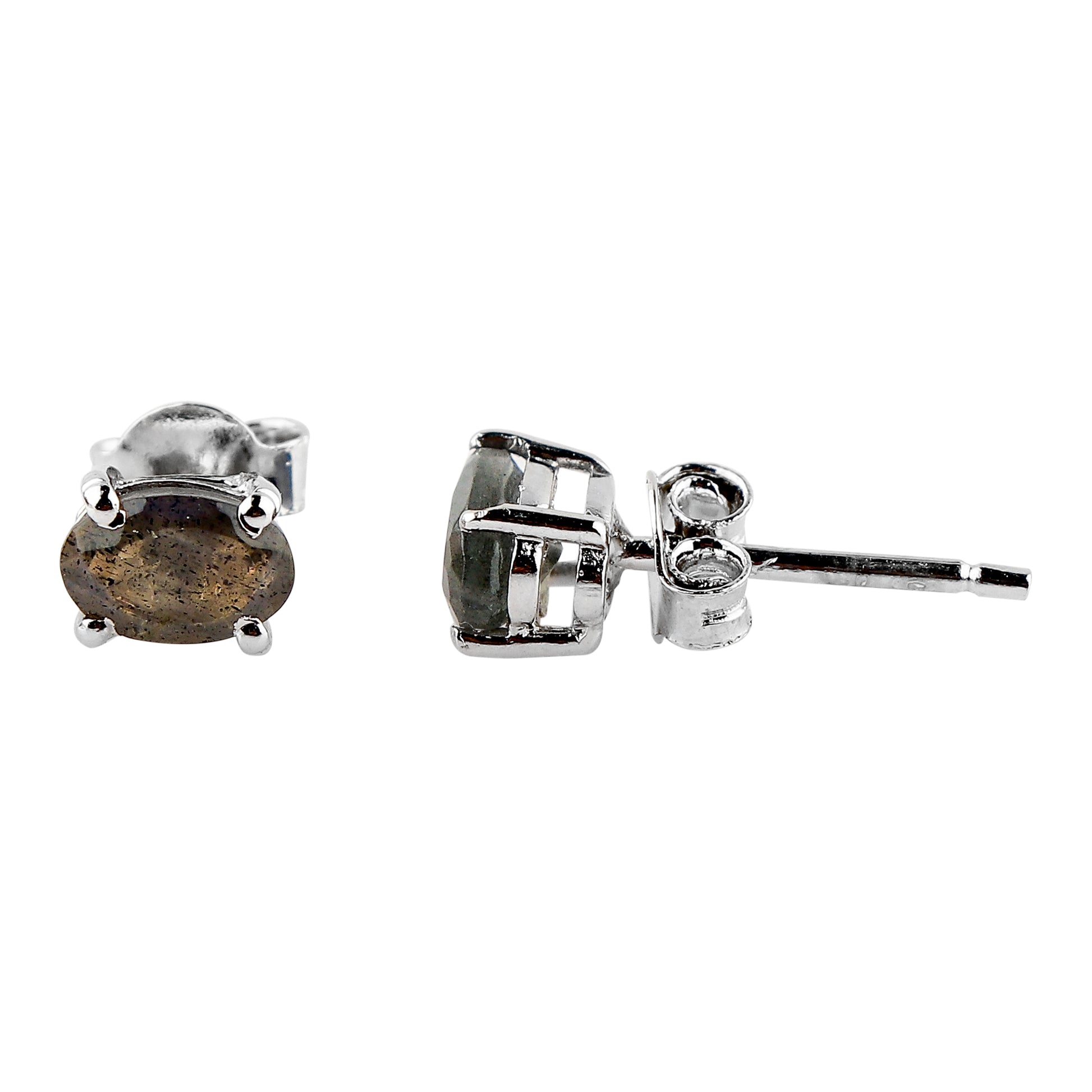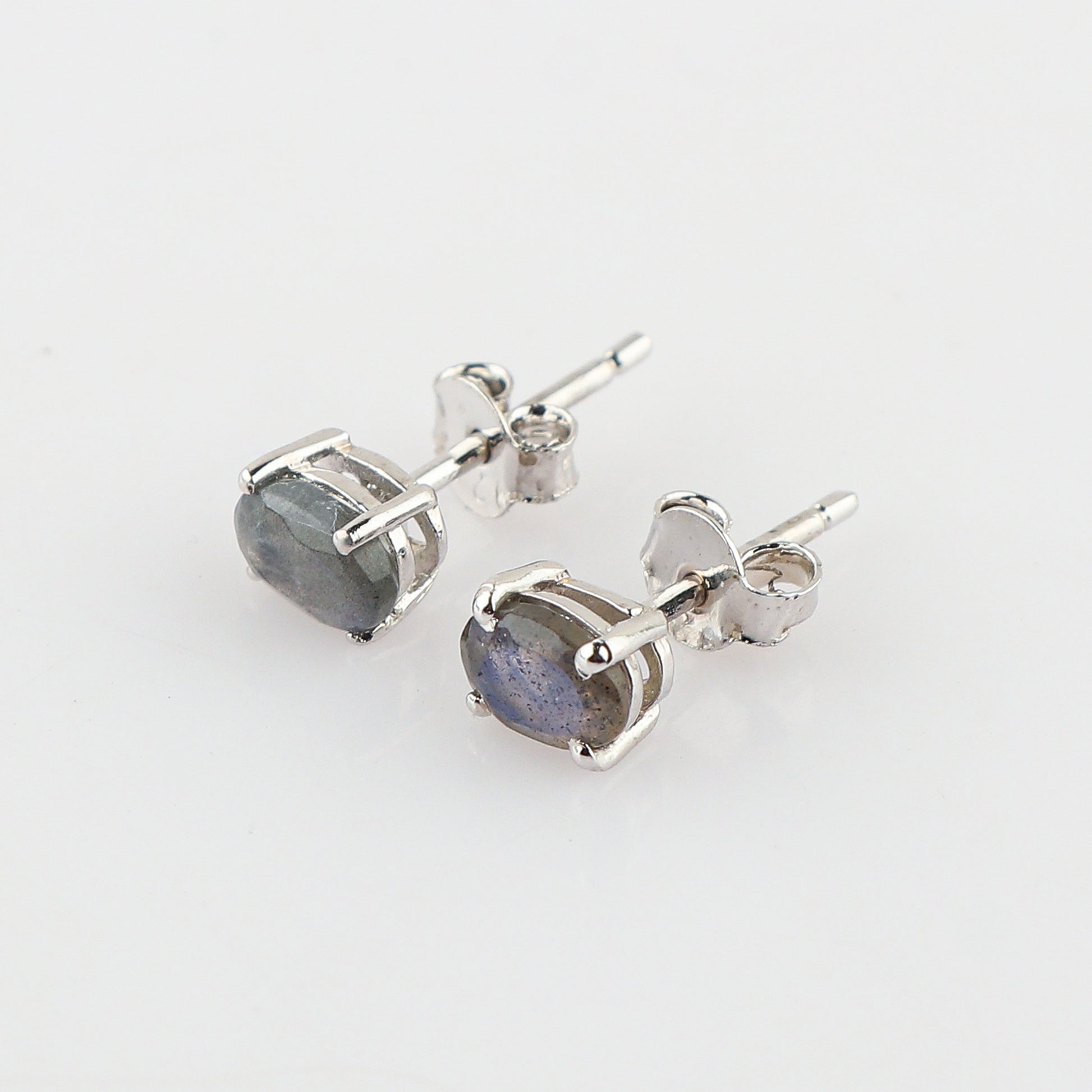 Add a touch of mystic elegance to your jewellery collection with these Natural Labradorite Crystal Stud Earrings, crafted in premium 925 Sterling Silver. Each earring showcases a brilliant-cut oval-shaped Labradorite gemstone (6×4 mm), beautifully presenting its shimmering multi-colour flashes in a secure prong setting.