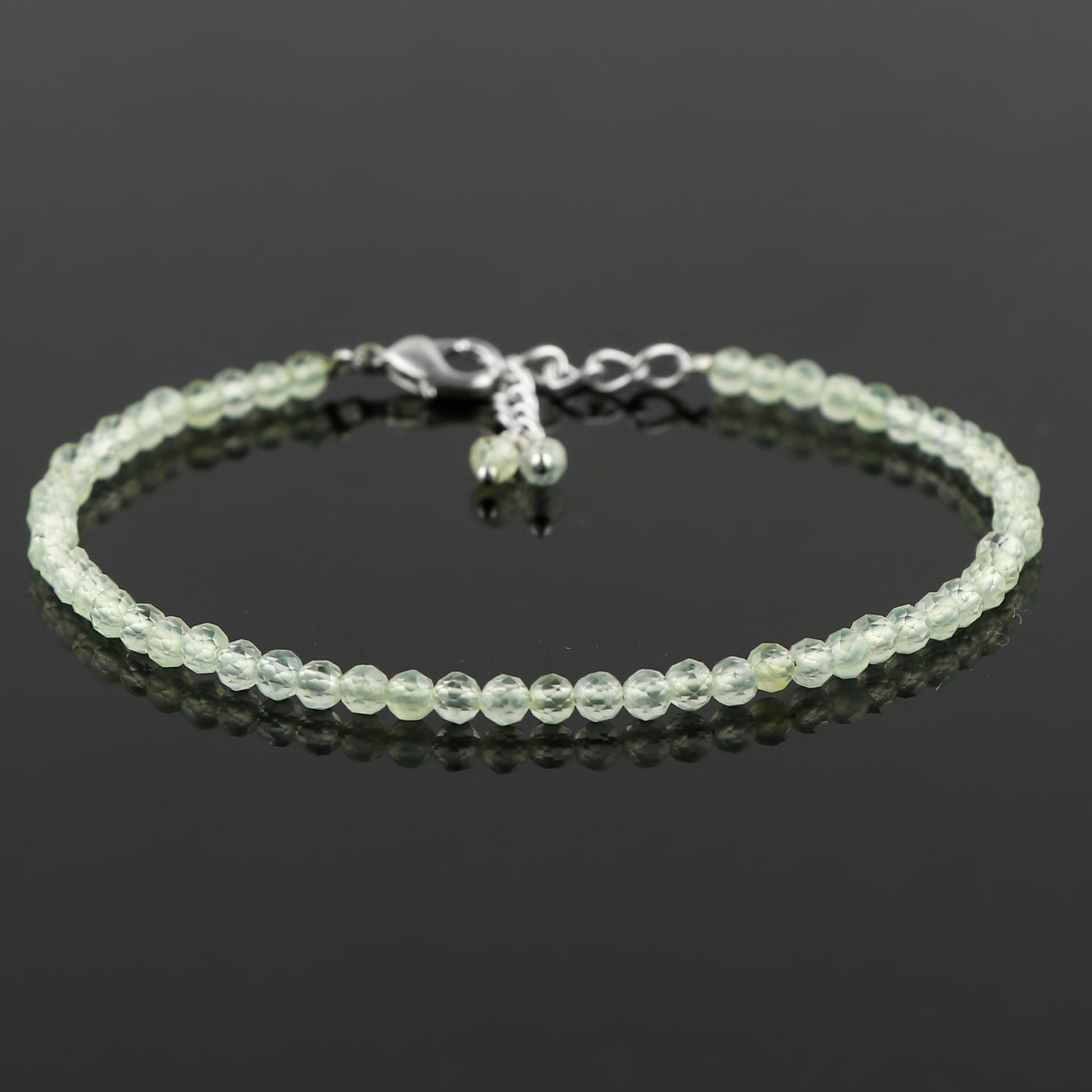 Elevate your look with this Natural Prehnite Gemstone Bracelet, crafted from soft green micro-faceted crystal beads that create a beautiful, glowing shine. Prehnite is cherished for its calming energy and its ability to promote clarity, intuition, and emotional harmony. Each bead is intricately cut to highlight the stone’s natural luminosity, giving the bracelet a refined and elegant appearance perfect for daily wear.