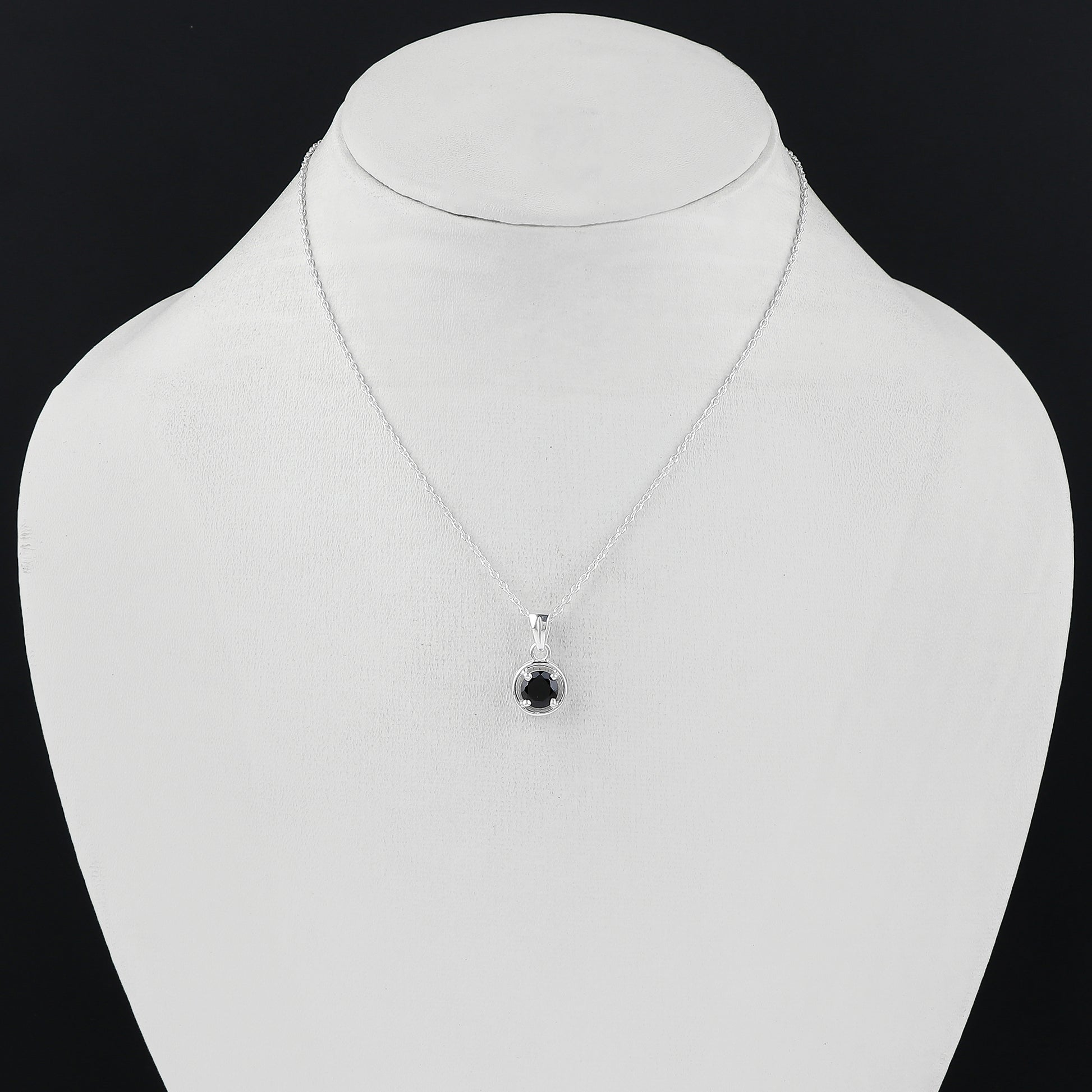 Real Black Spinel Crystal Pendant Necklace, Natural Gemstone, Birthstone Crystal, Healing Stone, Gift for Women Mom Her, Statement Jewellery, 925 Sterling Silver 18 inch