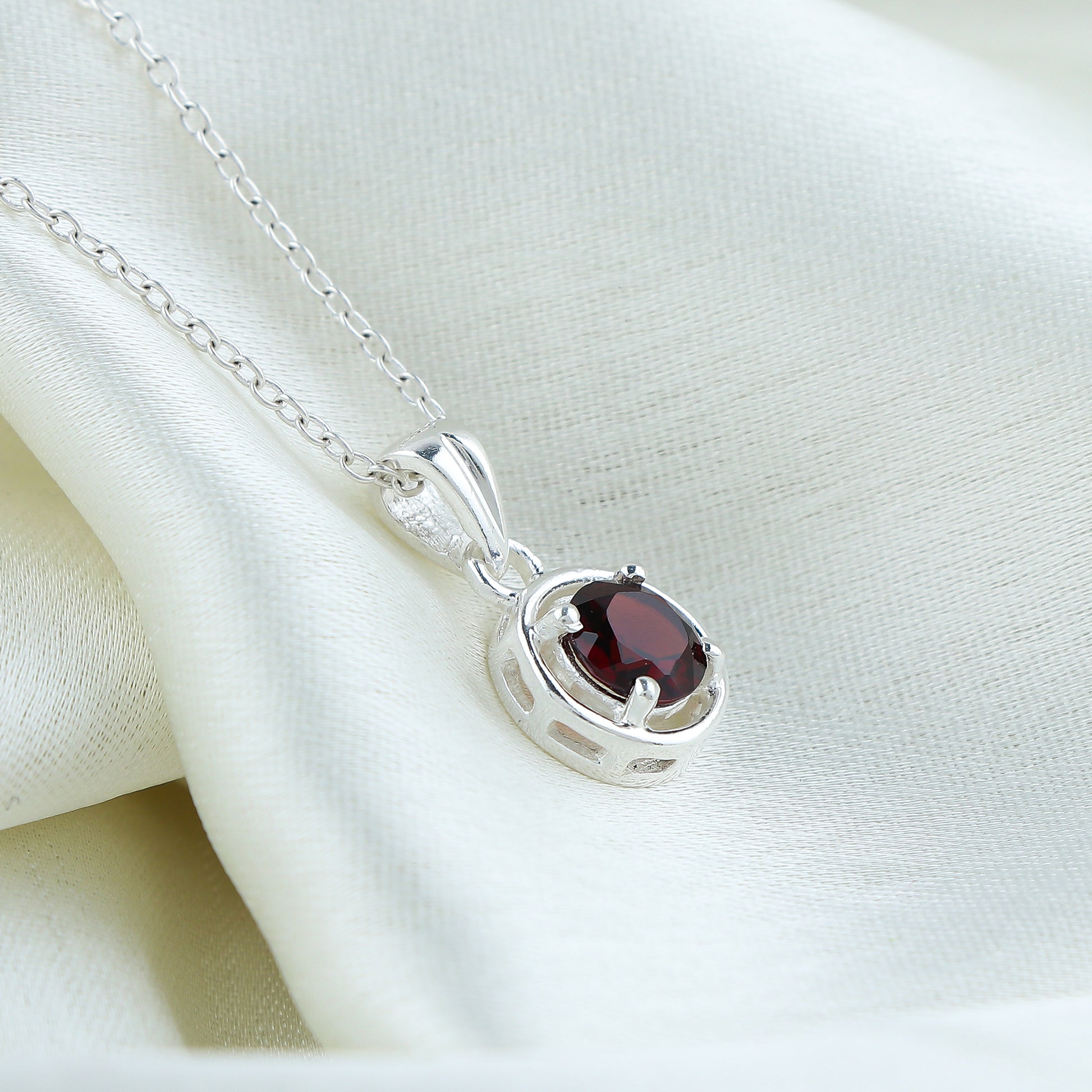 Real Garnet Crystal Pendant Necklace, Natural Gemstone, Birthstone Crystal, Healing Stone, Gift for Women Mom Her, Statement Jewellery, 925 Sterling Silver 18 inch