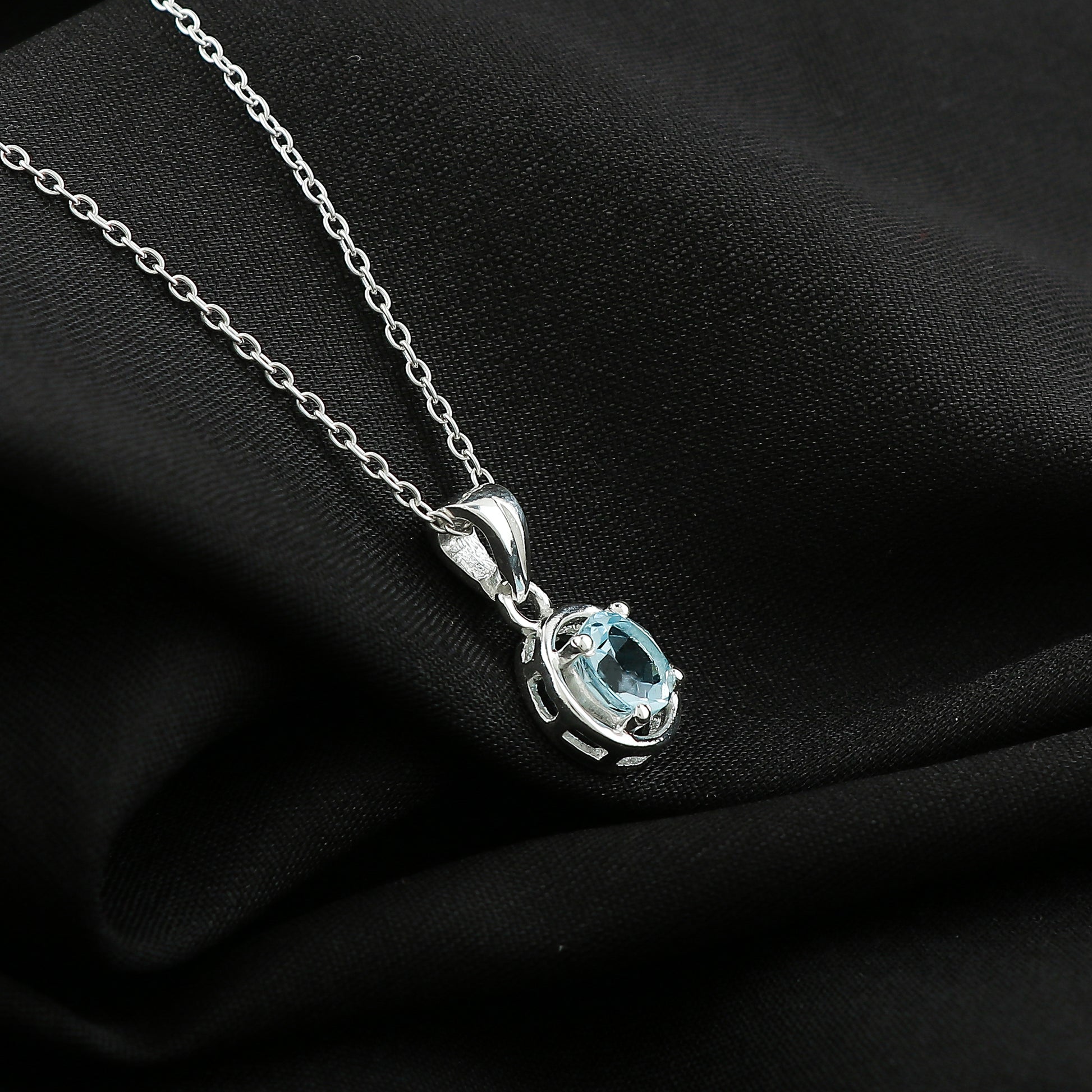 Real Sky Blue Topaz Crystal Pendant Necklace, Natural Gemstone, Birthstone Crystal, Healing Stone, Gift for Women Mom Her, Statement Jewellery, 925 Sterling Silver 18 inch