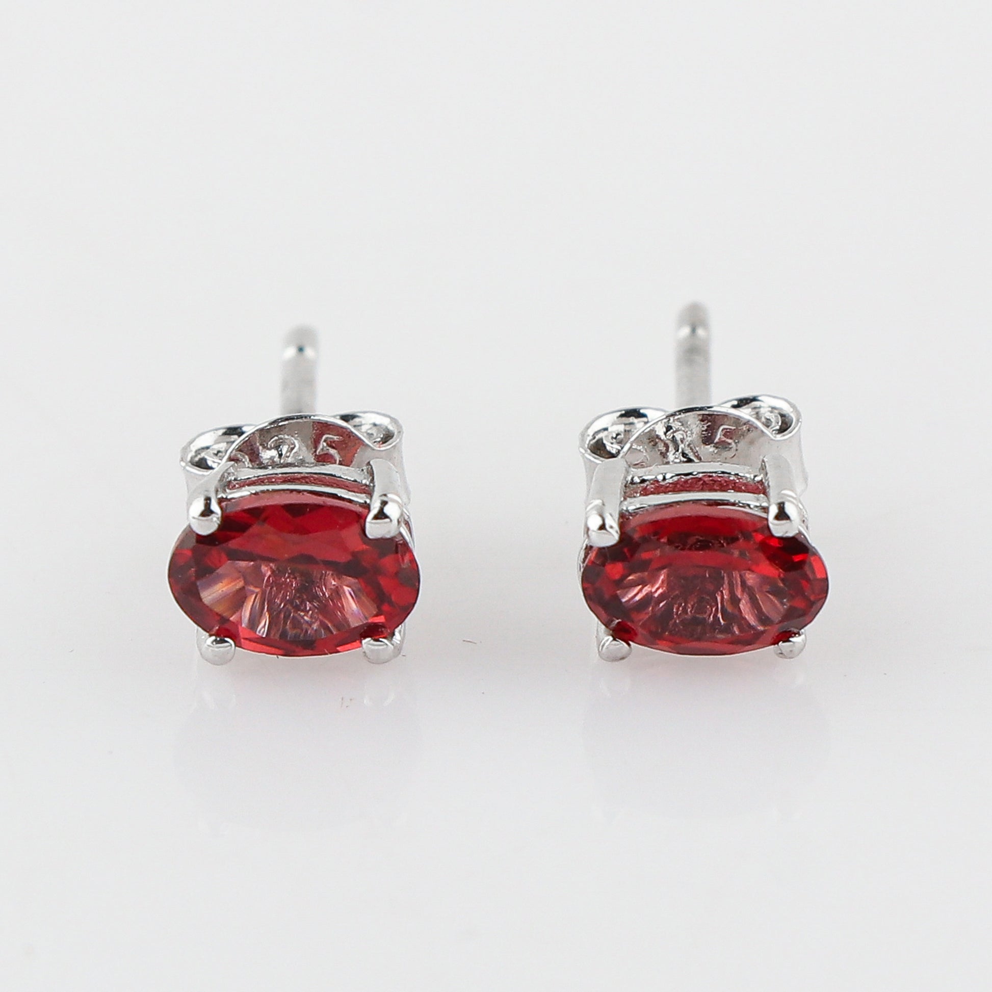 These Natural Garnet Crystal Stud Earrings are crafted in 925 Sterling Silver for a sleek and elegant finish. Each earring features an oval brilliant-cut Garnet gemstone (6×4 mm) set in a secure prong setting, showcasing its deep, captivating red color.